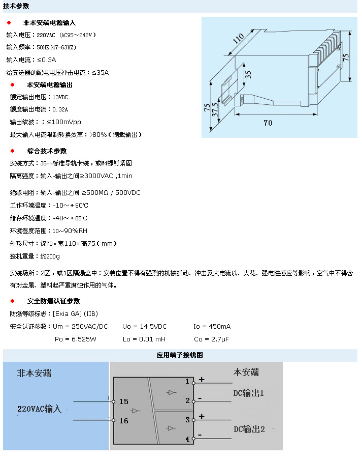 給危險區(qū)的儀表提供隔離的13VDC本安電源