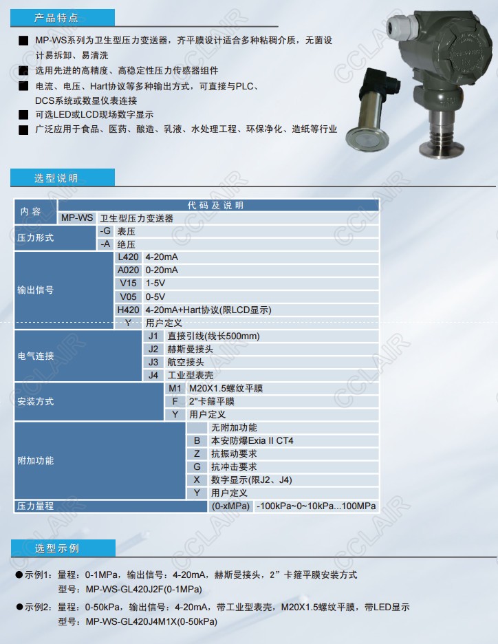 MP-WS-G,MP-WS-A,MP-WS-GL420J2F,MP-WS-GL420J4M1X,MP-WS,衛(wèi)生型壓力變送器