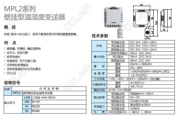 MPL2-L420,MPL2-V05,MPL2-R1,MPL2-R2,MPL2,壁掛型溫濕度變送器