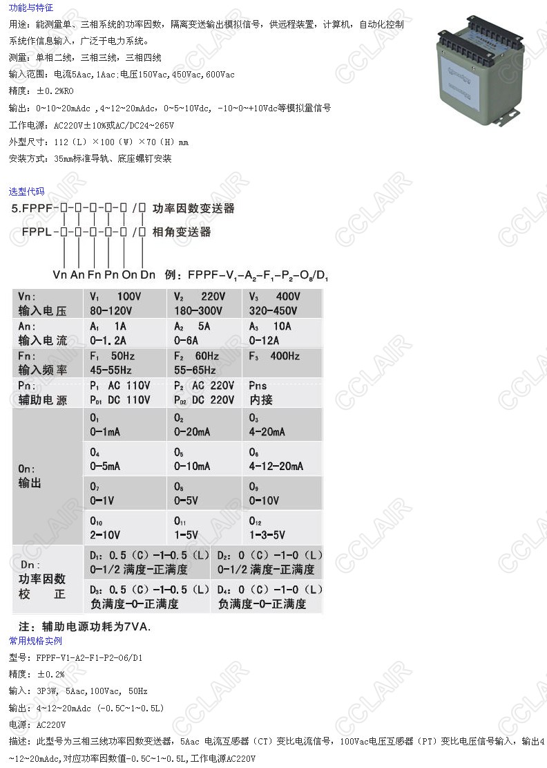 FPPF-V1-A1-F1-P1-O1/D1,FPPF-V1-A2-F1-P2-O6/D1,FPPF-V2,FPPF-V3,FPPF,功率因數(shù)變送器