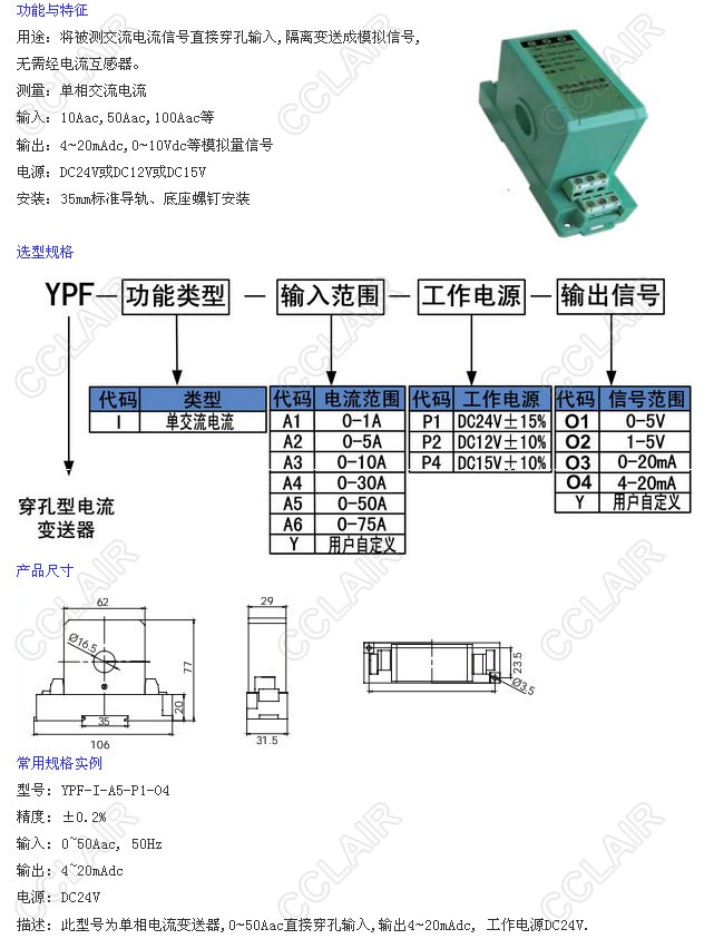 YPF-I-A1-P1-O1,YPF-I-A3-P4-O3,YPF-I-A4-P2-O4,YPF-I-A6-P1-O1,YPF,穿孔電流變送器