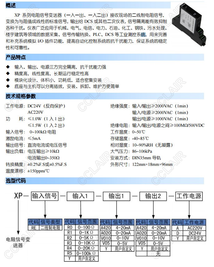 XP-RE-R0-A420-A,XP-RE-R3-A420-A420-D,XP-RE-R4-V010-V05-A,XP,電阻信號變送器