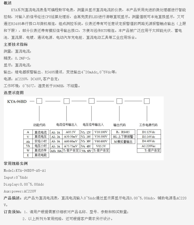 KYA-96BDA-A1,KYA-96BDA-A2,KYA-96BDA-A3,KYA-96BDA-A5,KYA-96BDA-A10,KYA,直流電流表