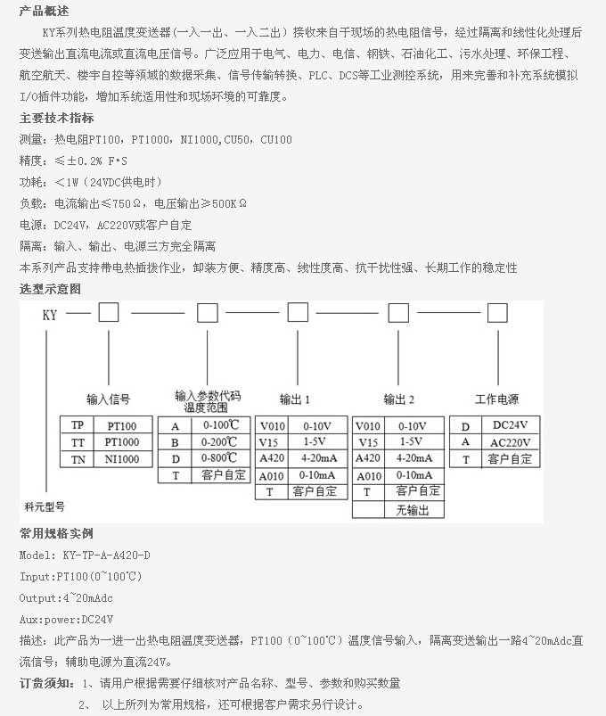 KY-TP-A,KY-TP-B,KY-TP-D,KY-TP-T,KY-TT-A,KY-TT-B,KY-TP-A-A420-D,KY,熱電阻溫度變送器