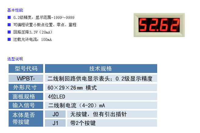 WPBT-J0,WPBT-J1,二線制回路供電表頭