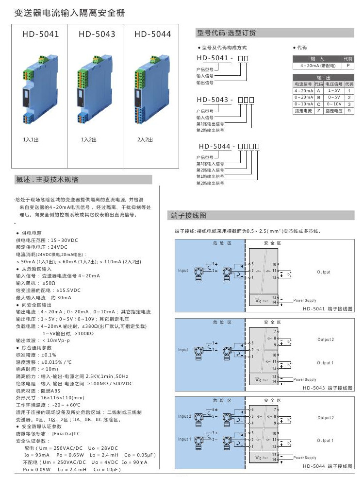 HD-5041,HD-5043,HD-5044,變送器電流輸入隔離安全柵