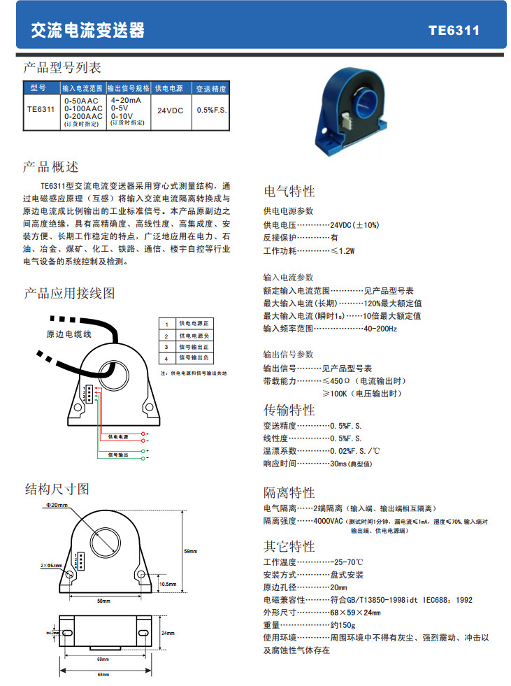TE6311,交流電流變送器