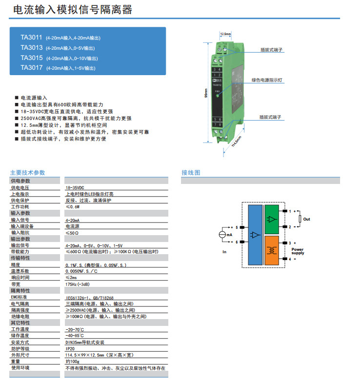 TA3011,TA3013,TA3015,TA3017,電流輸入模擬信號隔離器