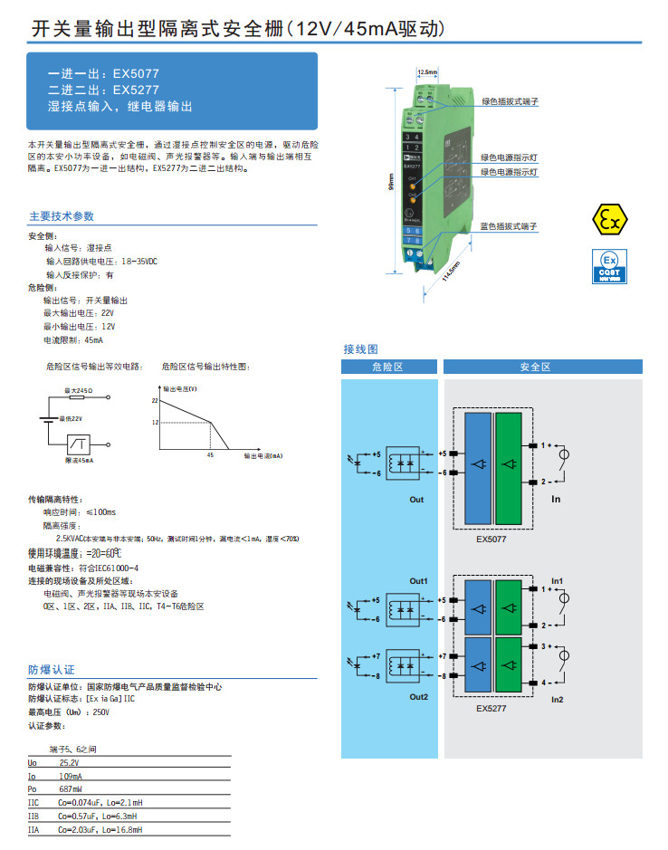 EX5077,EX5277,開關量輸出型隔離式安全柵