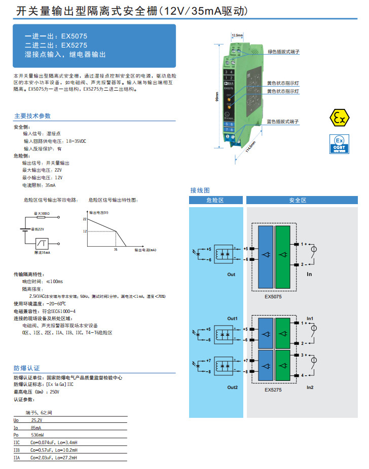 EX5075,EX5275,開關(guān)量輸出型隔離式安全柵