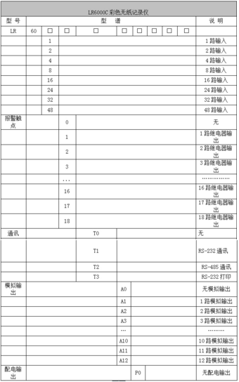 LR6000C系列彩色壓力記錄儀48路(不含報(bào)警,變送等其它功能)萬能輸入(可組態(tài)選擇輸入:標(biāo)準(zhǔn)電壓、標(biāo)準(zhǔn)電流、熱電偶、熱電阻、頻率、毫伏等)。可帶18路報(bào)警輸出,12個變送輸出,RS232/485通訊接口,以太網(wǎng)接口,微型打印機(jī)接口和USB接口,SD卡插座;可提供傳感器配電;具有強(qiáng)大的顯示功能,實(shí)時曲線顯示,歷史曲線追憶,棒圖顯示,報(bào)警列表顯示。人性化的外觀設(shè)計(jì)、完美的功能體現(xiàn)、可靠的硬件品質(zhì)、精湛的制造工藝,使LR6000C具有更高的性能價(jià)格比。