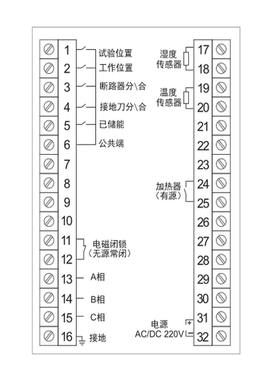 4、高壓帶電指示器的各輸入端分別接入對應(yīng)的高壓帶電傳感器,高壓帶電指示燈亮,閉鎖有效,閉鎖燈滅;高壓斷開后,帶電指示燈滅,閉鎖接觸,指示燈亮。在MT-ZT140系列產(chǎn)品中,三相(A、B、C)任意一相帶電對應(yīng)的指示燈亮,閉鎖觸點有效。