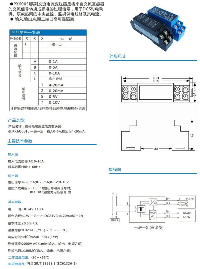 PX6003I1A1,PX6003I1B2,PX6003I1B7,PX6003I1C5,PX6003I1D7,PX6003I,有源電流變送器