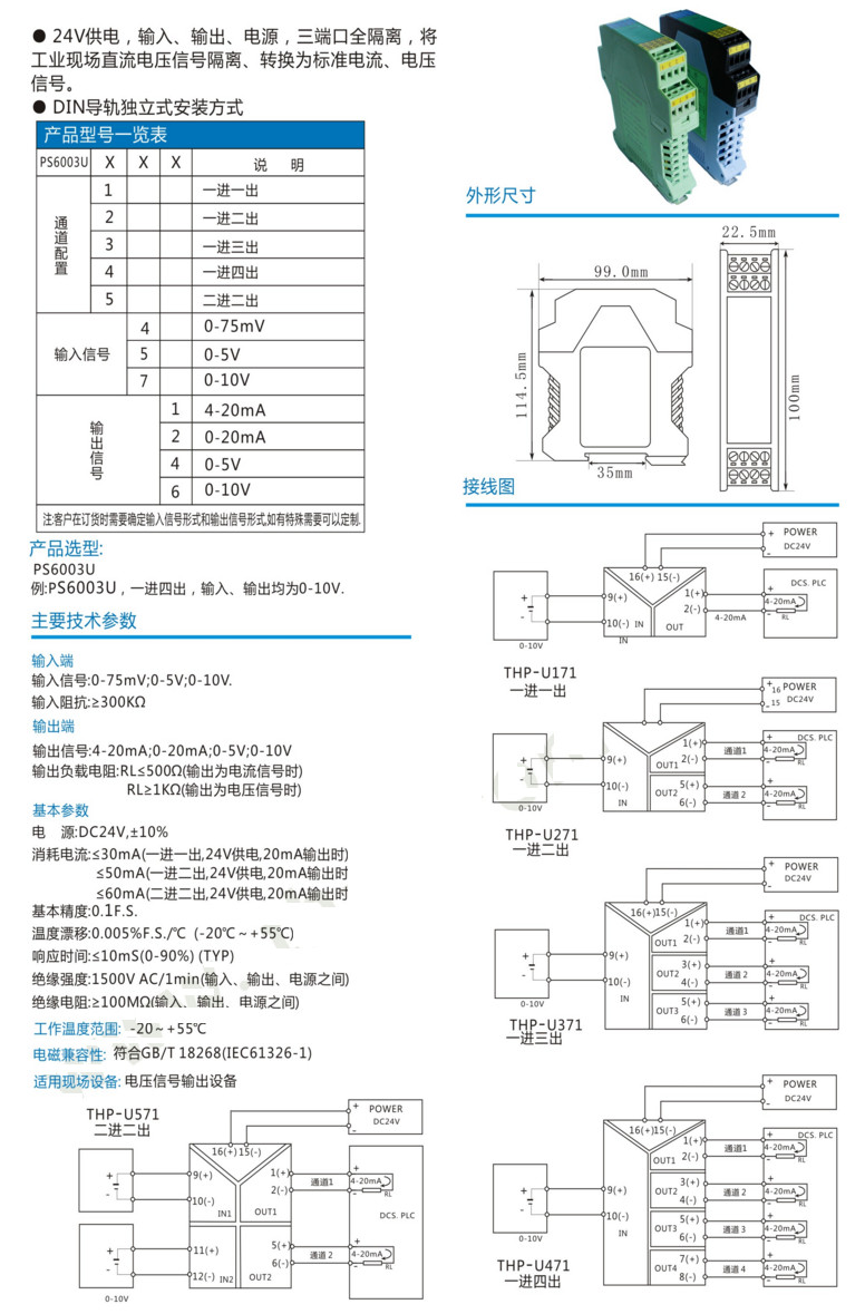 PS6003U141,PS6003U172,PS6003U254,PS6003U346,PS6003U576,PS6003U,多路電壓信號隔離配電器