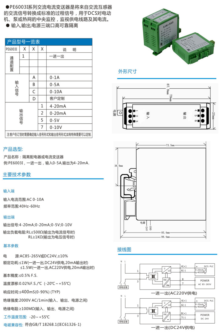 PE6003I1A,PE6003I1B,PE6003I1C,PE6003I1D,PE6003I,隔離信號(hào)配電器
