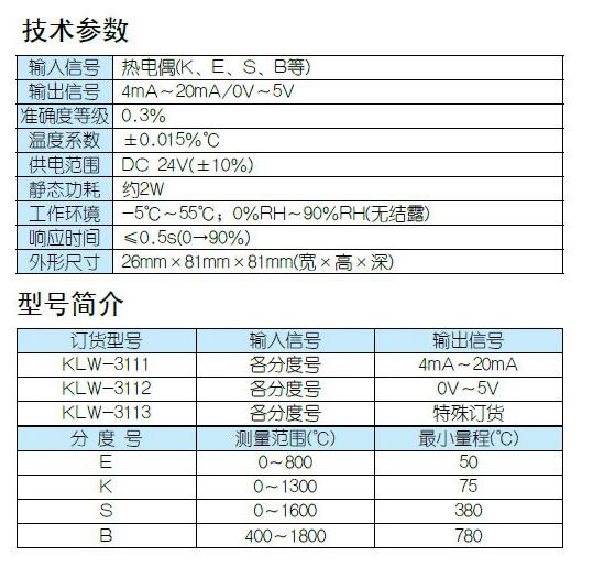 KLW-3111,KLW-3112,KLW-3113,KLW-311,熱電偶輸入信號隔離處理器