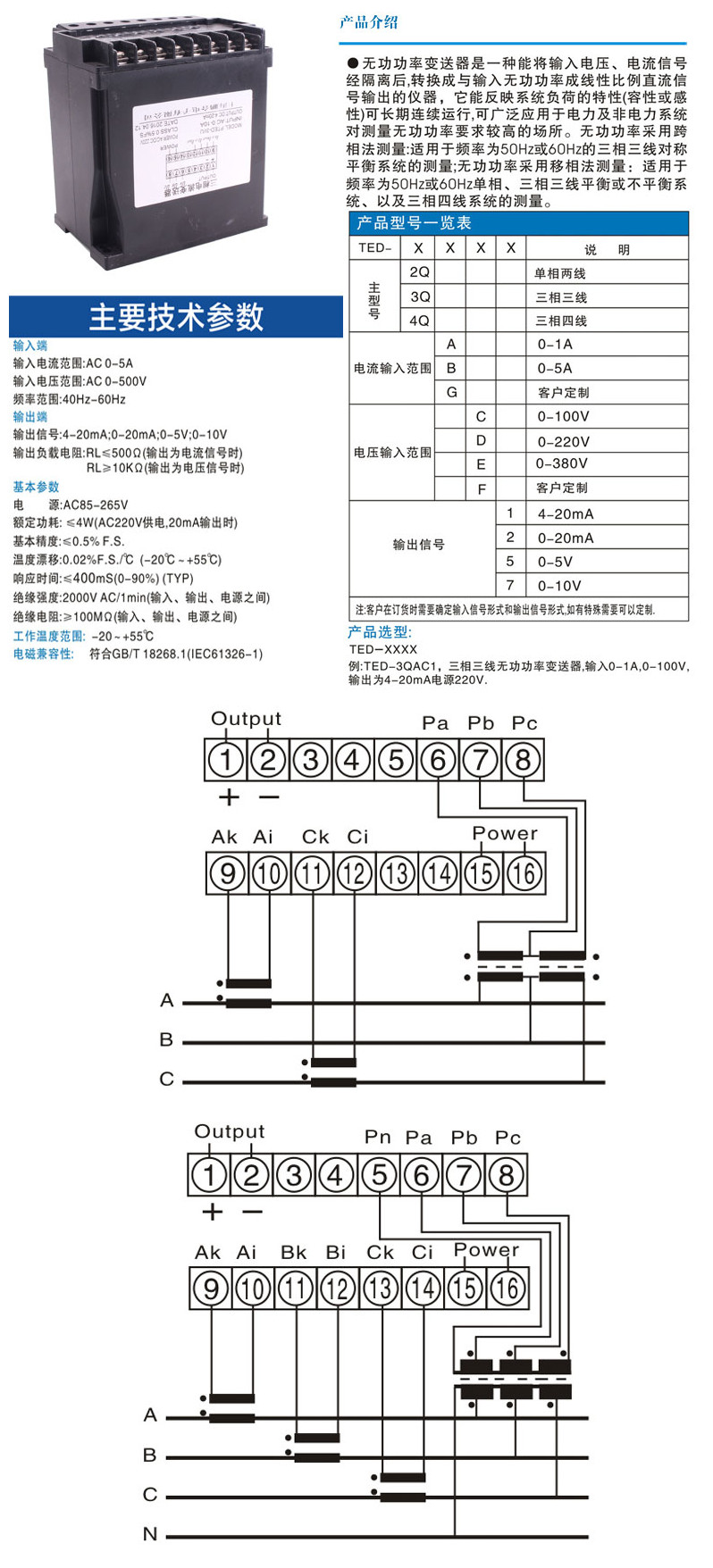 TED-2QAC1,TED-2QBD5,TED-3QAE2,TED-4QAE7,TED-4QGF7,TED-2Q,TED-3Q,TED-4Q,無功功率變送器