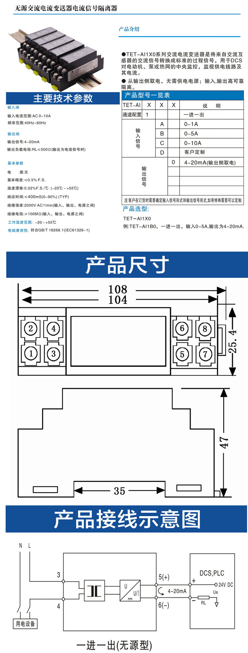 TET-AI1A0,TET-AI1B0,TET-AI1C0,TET-AI1D0,TET-AI1X0,交流電流變送器