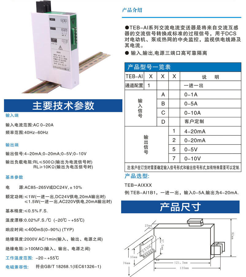 TEB-AI1A1,TEB-AI1A2,TEB-AI1B2,TEB-AI1C5,TEB-AI1D5,TEB-AI1D7,TEB-AI,交流電流變送器