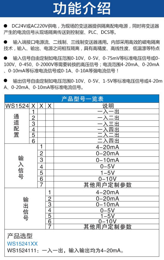 WS1524111,WS1524212,WS1524314,WS1524415,WS1524564,WS1524647,WS1524,信號隔離器