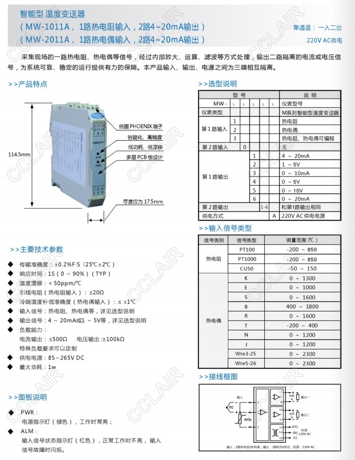NW-1033A,NW-1045A,NW-2015A,NW-2061A,NW-3012A,NW-3035A,NW-3066A,NW-1011A,溫度變送器
