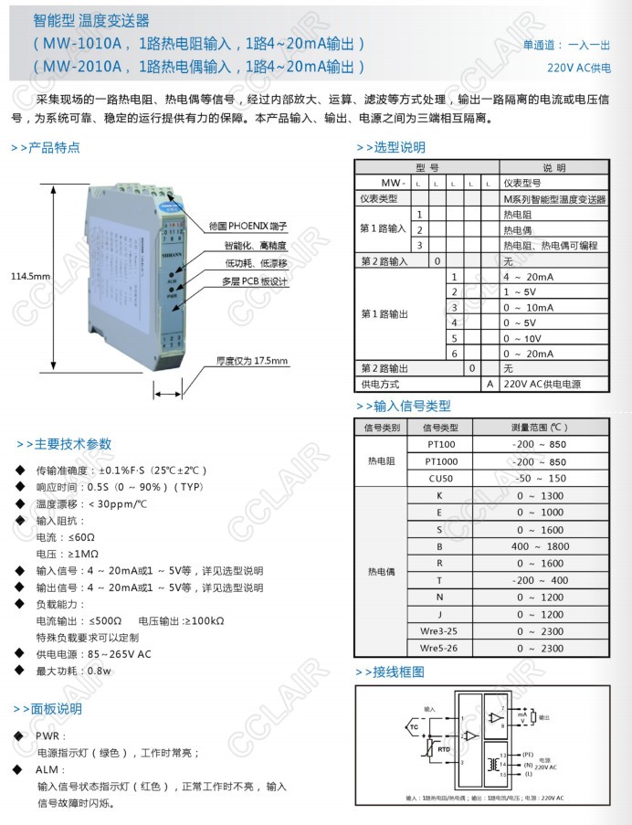 MW-1020A,MW-1040A,MW-2020A,MW-2060A,MW-3050A,MW-2010A,MW-3010A,MW-1010A,溫度變送器
