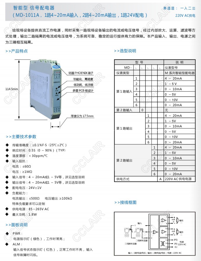 MD-1012A,MD-1051A,MD-2025A,MD-2042A,MD-3054A,MD-4025A,MD-6065A,MD-1011A,信號(hào)隔離變送器