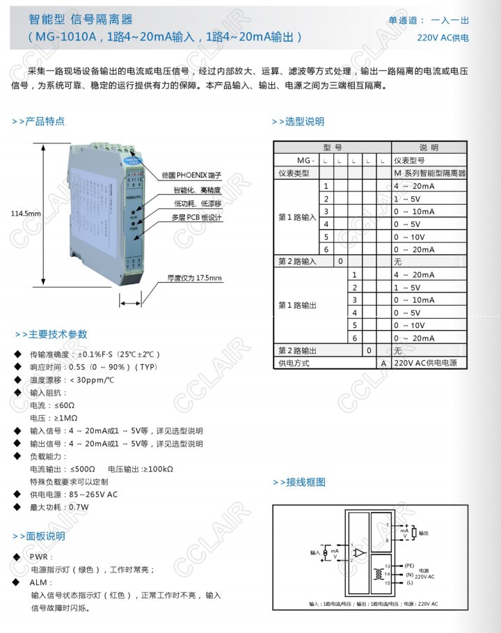 MG-1020A,MG-2030A,MG-3030A,MG-2060A,MG-4050A,MG-5060A,MG-6010A,MG-1010A,信號隔離變送器