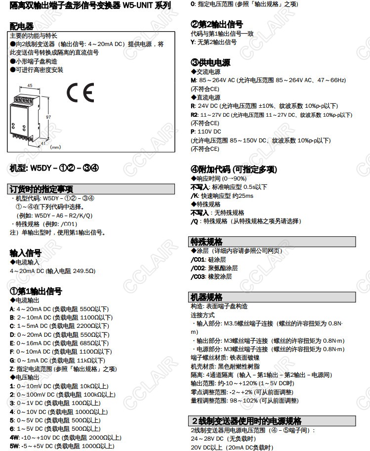 W5DY-AA-M,W5DY-AC-R,W5DY-A5-R2,W5DY-A6-R2,W5DY-A6-R2/K,W5DY-A6-R2/Q,W5DY,信號(hào)變換器