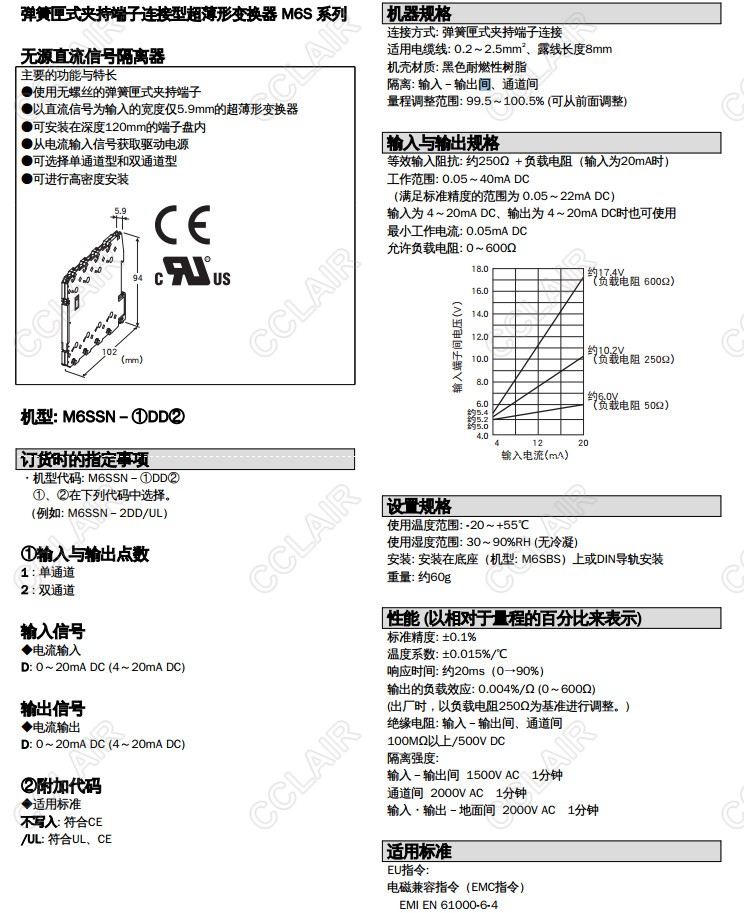 M6SSN-1DD,M6SSN-2DD,M6SSN-1DD/UL,M6SSN-2DD/UL,M6SSN,直流信號隔離器