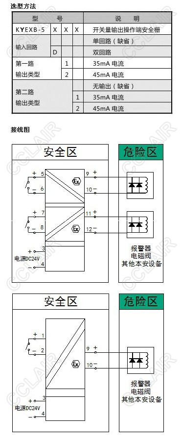 將來自安全區(qū)的電源通過開關(guān)控制或邏輯電平信號控制,來驅(qū)動危險(xiǎn)區(qū)的本安小功率設(shè)備,它適用于驅(qū)動如電磁閥、聲光報(bào)警器等本安設(shè)備。