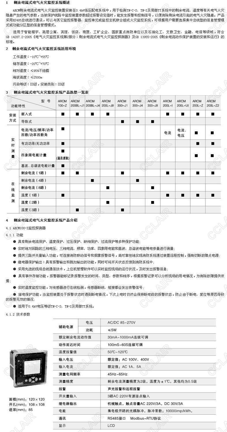 ARCM100-Z,ARCM200BL-J1,ARCM200BL-J4,ARCM200L-J8,ARCM200L-Z,ARCM,剩余電流式電氣火災(zāi)監(jiān)控裝置