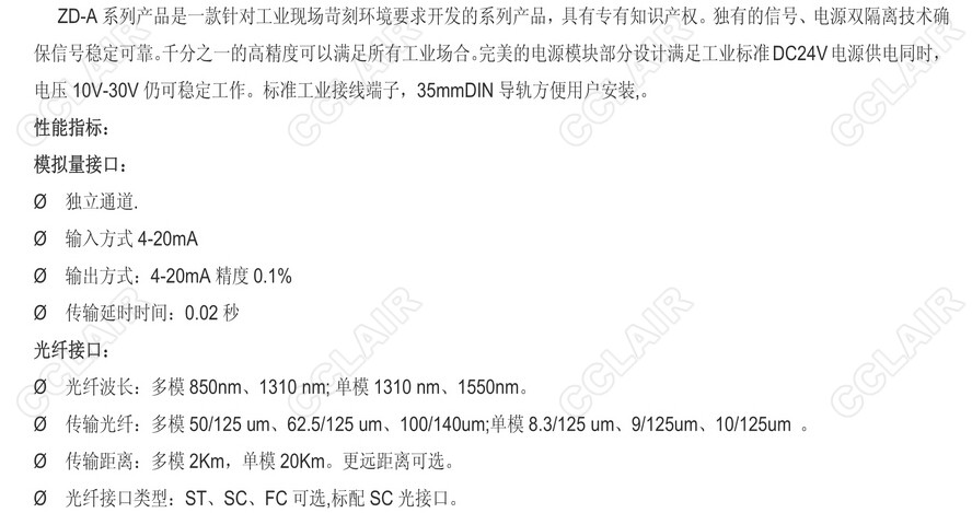 ZD-A,4-20mA模擬量光端機