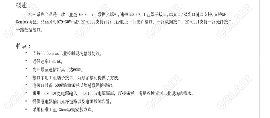 ZD-G系列GE Genius總線數(shù)據(jù)光端機(jī)