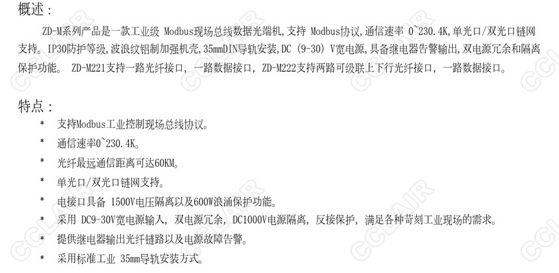 ZD-M,Modbus總線數(shù)據(jù)光端機(jī)