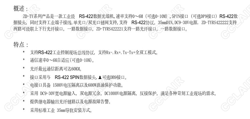 ZD-TY,RS-422總線數(shù)據(jù)光端機