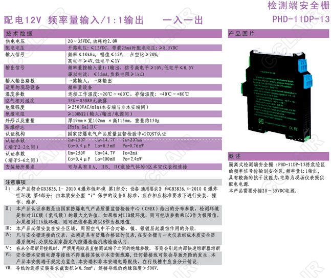 PHD-11DP-13檢測端安全柵