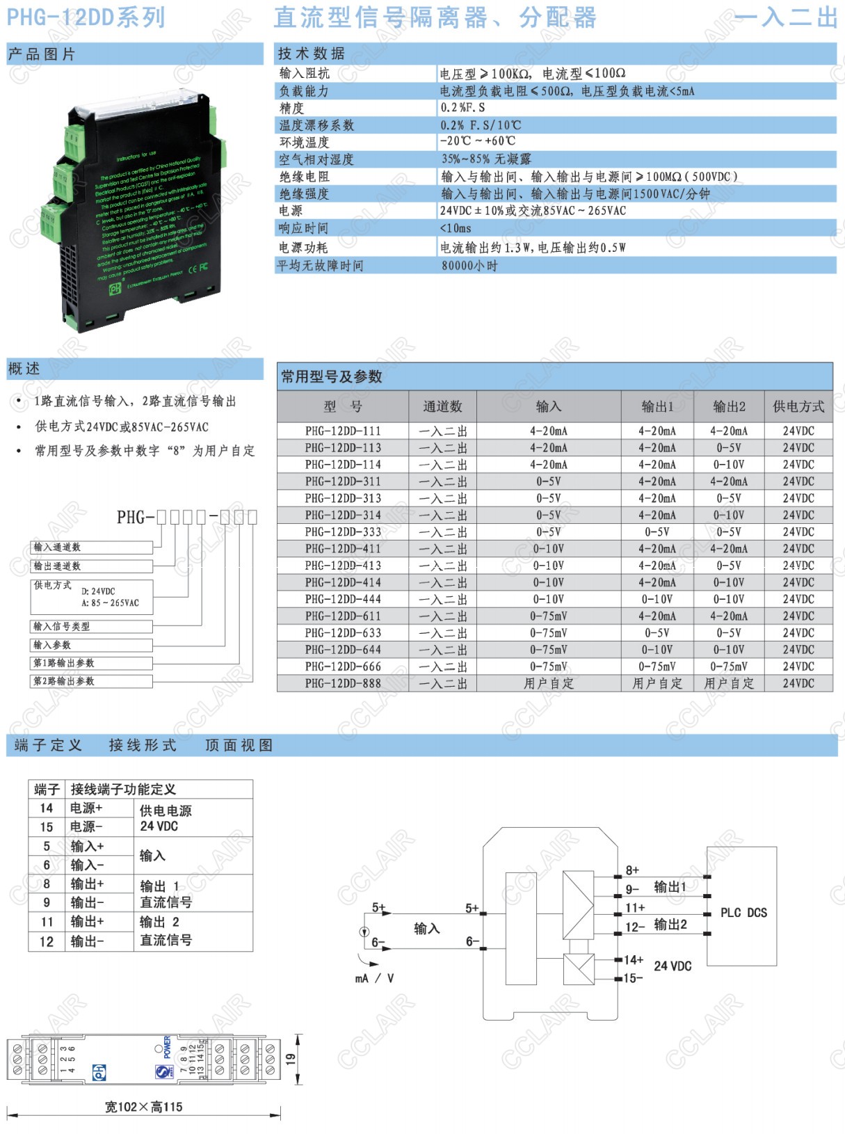 PHG-12DD-111,PHG-12DD-313,PHG-12DD-414,PHG-12DD-888,PHG-12DD,直流型信號(hào)隔離器