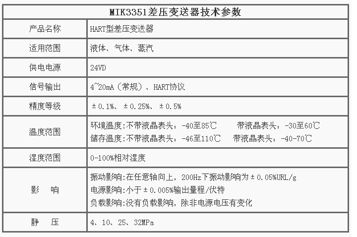 MIK3351差壓變送器是引進(jìn)國(guó)外先進(jìn)技術(shù)和設(shè)備,關(guān)鍵原材料、元器件和零部件均采用進(jìn)口。整機(jī)經(jīng)過嚴(yán)格組裝和調(diào)試,具有設(shè)計(jì)原理先進(jìn)、品種規(guī)格齊全、安裝使用簡(jiǎn)單等特