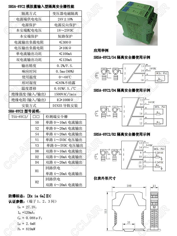 SHSA-8YC2/S0,SHSA-8YC2/V3,SHSA-8YC2/D4,HSA-8YC2/H2,SHSA-8YC2,模擬量輸入型隔離安全柵