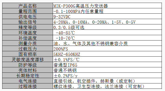 MIK-P300G,MIK-P300G-2MPa-V1-B1-C1-J1P3,高溫型壓力變送器