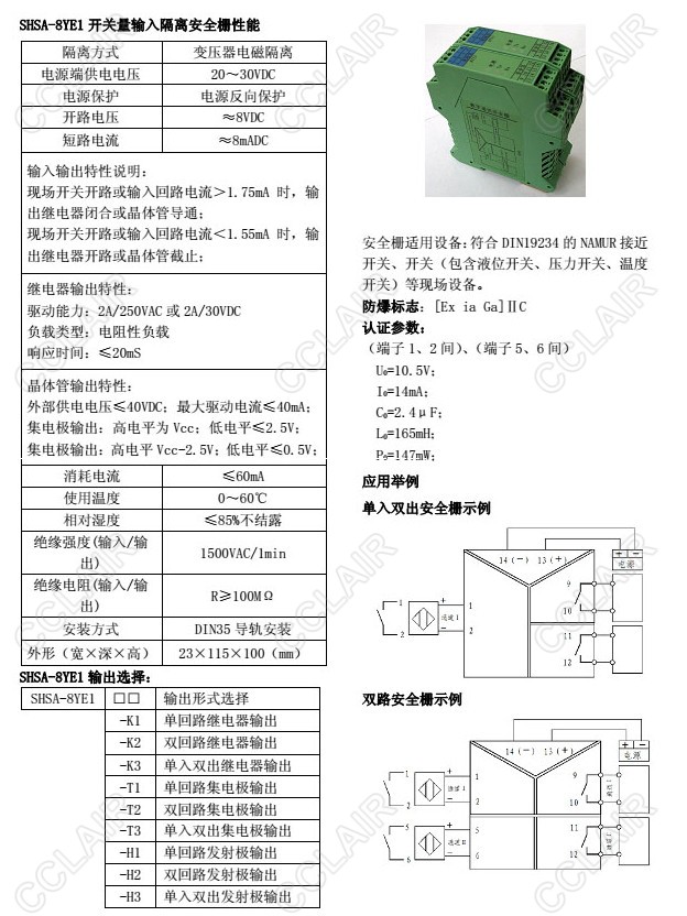 SHSA-8YE1-K1,SHSA-8YE1-K3,SHSA-8YE1-T2,SHSA-8YE1-H3,SHSA-8YE1,開關量輸入隔離安全柵