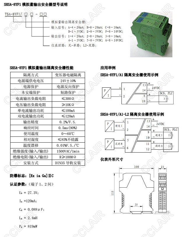 SHSA-8YF1/A1,SHSA-8YF1/B2,SHSA-8YF1/A1-L2,SHSA-8YF1,模擬量輸出隔離安全柵