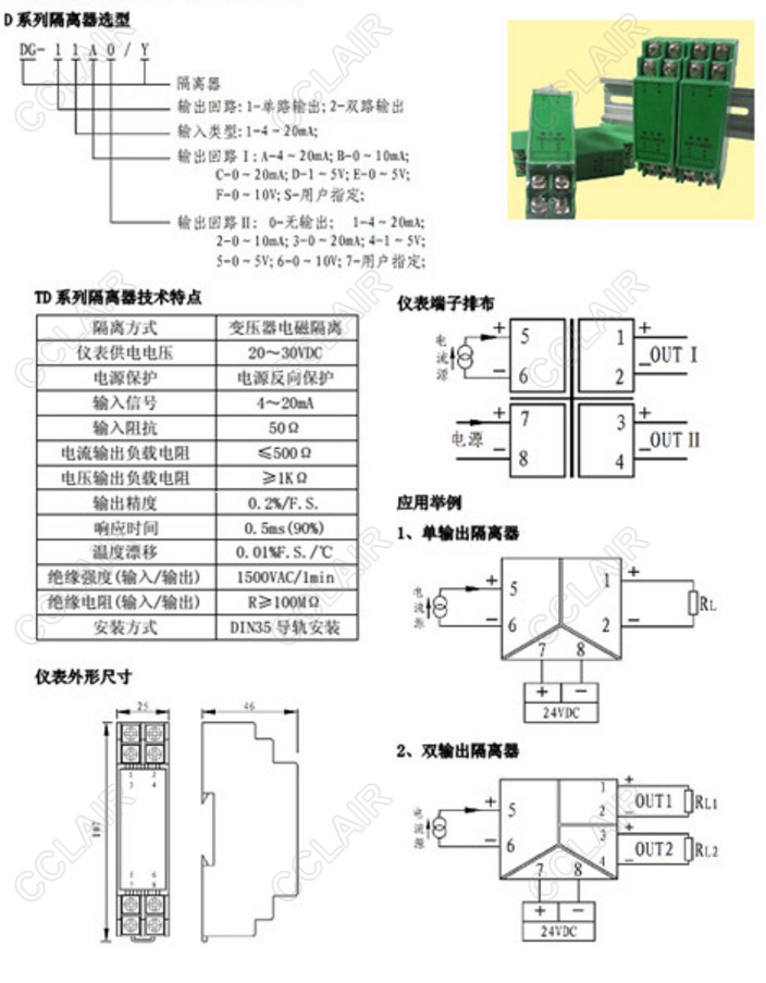 DG-11A0/Y,DG-11B1/Y,DG-11D2/Y,DG-11E3/Y,DG-21B4/Y,DG-21E1/Y,DG-21F6/Y,單輸出隔離器