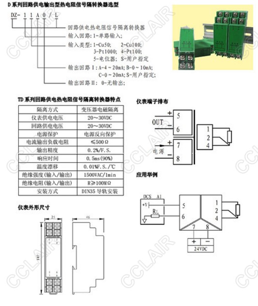 DZ-11A0/L,DZ-12B0/L,DZ-13C0/L,DZ-14A0/L,DZ-15C0/L,回路供電熱電阻信號(hào)隔離轉(zhuǎn)換器