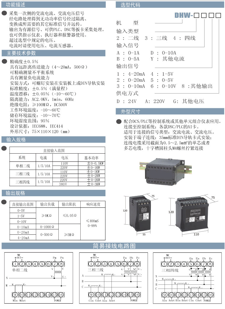 DHW-2A1D,DHW-3A2G,DHW-3D5A,DHW-4A3G,DHW-4Y8G,DHW-2,DHW-3,DHW-4,DHW,三相無(wú)功率變送器