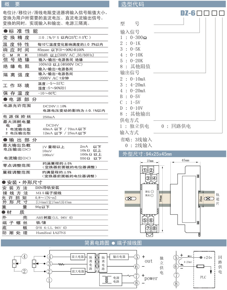 DZ-612,DZ-623,DZ-63B,DZ-64C,DZ-658,DZ-683,DZ-68D,DZ-688,DZ-6,滑線電阻隔離變送器