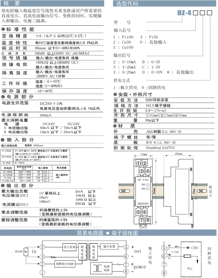 DZ-412,DZ-423,DZ-424,DZ-43B,DZ-43C,DZ-44D,DZ-443,DZ-408,DZ-4,熱電阻信號變送器