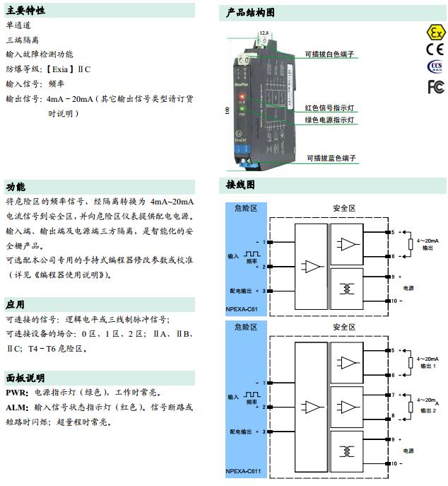 NPEXA-C61,NPEXA-C611,檢測(cè)端隔離式安全柵