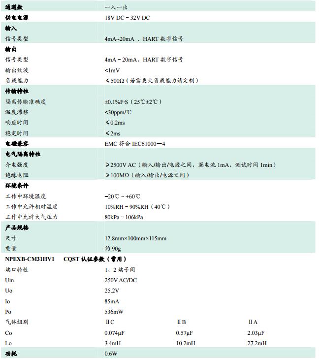 NPEXB-CM31H,電流輸出型隔離式安全柵